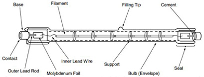Junto con nitrógeno (N₂) y argón (Ar), una pequeña cantidad de gas halógeno se utiliza para llenar el lámpara. Los gases de halógeno más ampliamente utilizados son compuestos de bromo (Br) y Cloro (Cl₂). Selección de los gases de halógeno se basa en las condiciones relativas a la aplicación de la lámpara.