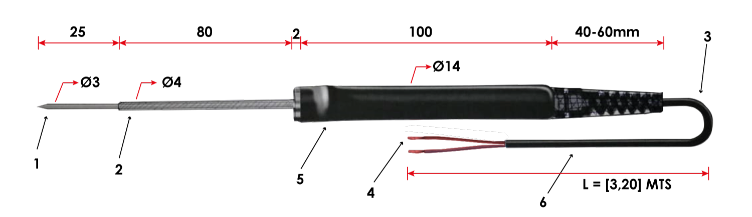 | Sensor | Termistor NTC R25 = 10kΩ + 1% 625/85 = 395K + 1% - Tipo de vidrio (no SMD) |