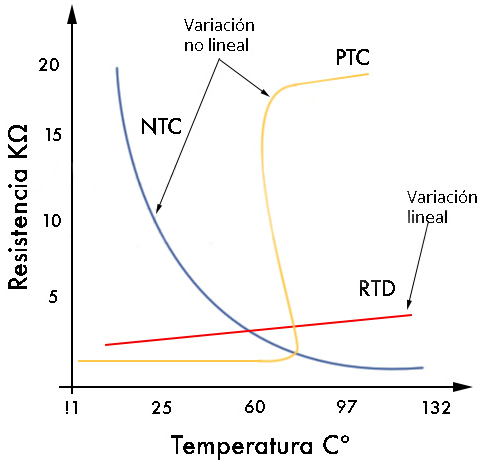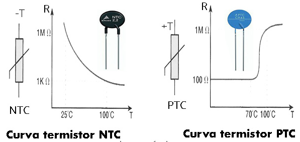 Solo existe una pequeña diferencia entre estos dos tipos de sensores, y es que mientras la temperatura aumenta, la resistencia disminuye en el caso del termistor NTC. Para el caso de los PTC, cuando la temperatura aumenta, también aumenta la resistencia.